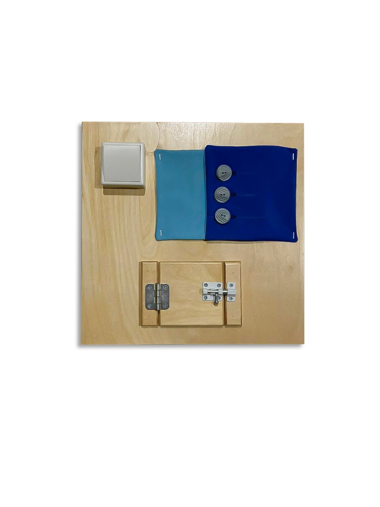 Разнообразие деталей на панели знакомит детей с основными характеристиками предметов. Ребенок учится отличать мягкое от твердого, гладкое от шершавого, а также различать материалы (пластик, ткань, дерево и т.д.).