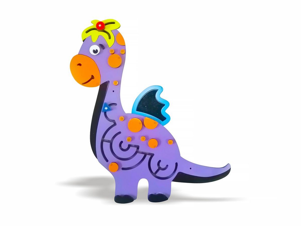 Дорожка-лабиринт на теле дракона с треугольным бегунком помогает в освоении детьми пространственного мышления и построении логических цепочек. Плавные линии укрепляют мышцы кистей рук, а бегунок стимулирует развитие хватательного рефлекса.