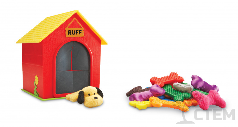 Игра помогает развивать тактильные навыки с помощью собачки "Руфф" и его текстурированных косточек.