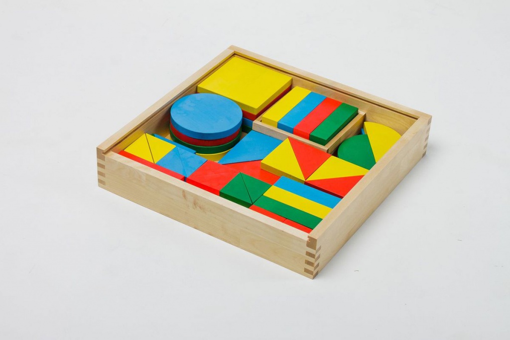 Сделан из натуральной древесины и окрашен безопасной краской на водной основе. Все деревянные поверхности гладкие и приятные на ощупь. Составляющие набора компактно складываются в удобный для хранения ящик с крышечкой размером 65х65 см. Фигуры окрашены в четыре основных цвета: красный, синий, желтый, зеленый.