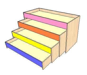 При изготовлении мебели с цветными элементами цена увеличится на 10% и более (в зависимости от количества цветных деталей)