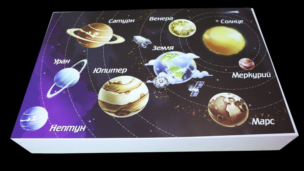Крышка "Планеты" послужит вам дополнительным учебным пособием, которое поможет в игровой форме познакомить солнечной системой планетами.