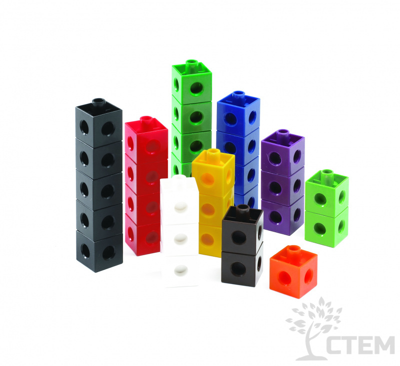 В наборе содержатся 100 кубиков (2 х 2 см), соединяющихся между собой, выполненных в 10 различных цветах.