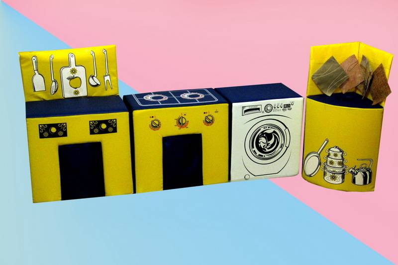 Мягкая игровая кухня изготовлена из поролона и ВИК (искусственной кожи).