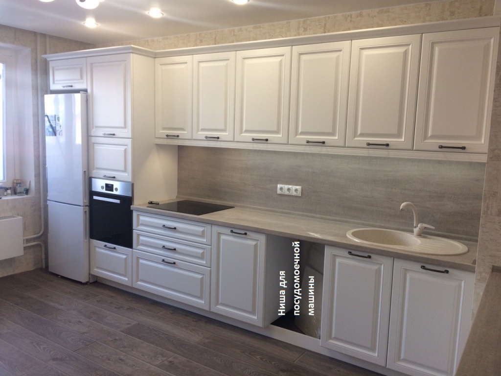 Фасады МДФ , цвет матовый белый с фрезеровкой.