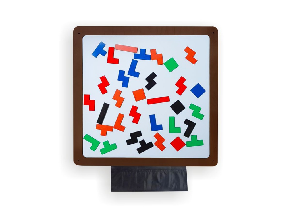 Настенная игра «Тетрис» — это новый формат известного развлечения. В таком виде игра доступна для детей от 3 лет. Оно выполнена из безопасных материалов: фанеры и магнитного винила. Детали имеют характерные формы для тетриса, окрашены в разные цвета. Доска для игры не имеет острых углов, гладкая и крепкая.