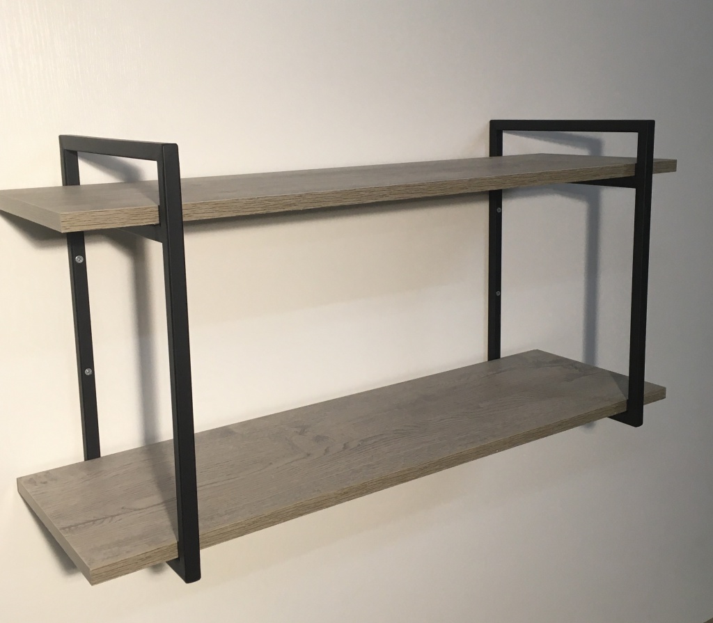 Каркас металлический с порошковым покрытием матово-черного цвета, полки выполнены из ЛДСП 16 мм. Внешний вид и структура ЛДСП имеет ярко выраженную древесную структуру с сучками в которой преобладает сизый оттенок. От его холодного серебристого оттенка веет прохладой нормандских фьордов. Декор придает легкости и упорядоченности пространству.