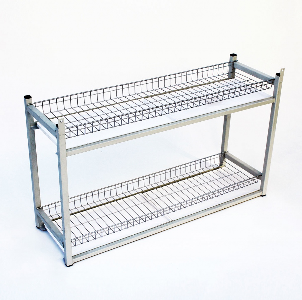 Сетки из нержавеющей стали, пластиковые съемные поддоны, каркас разборный из нержавеющей трубы.