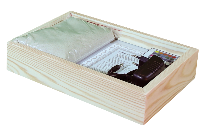 В комплекте пульт ДУ подсветкой, 1 кг натурального песка.