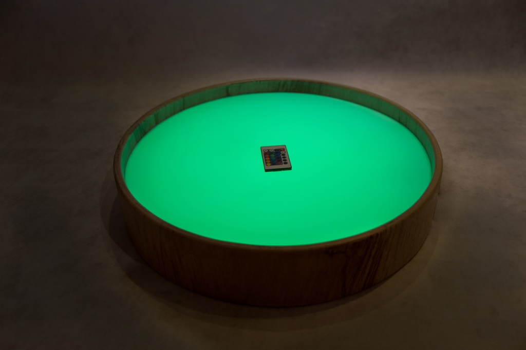 Материал: дерево сейба, оргстекло, цветная светодиодная подсветка (16 цветов).