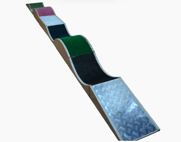 Покрытие тактильного комплекса: ковролин; рельефная плитка; искусственная трава; ковролин с детским рисунком; ворс; алюминиевое рифленое покрытие; линолеум; резина.