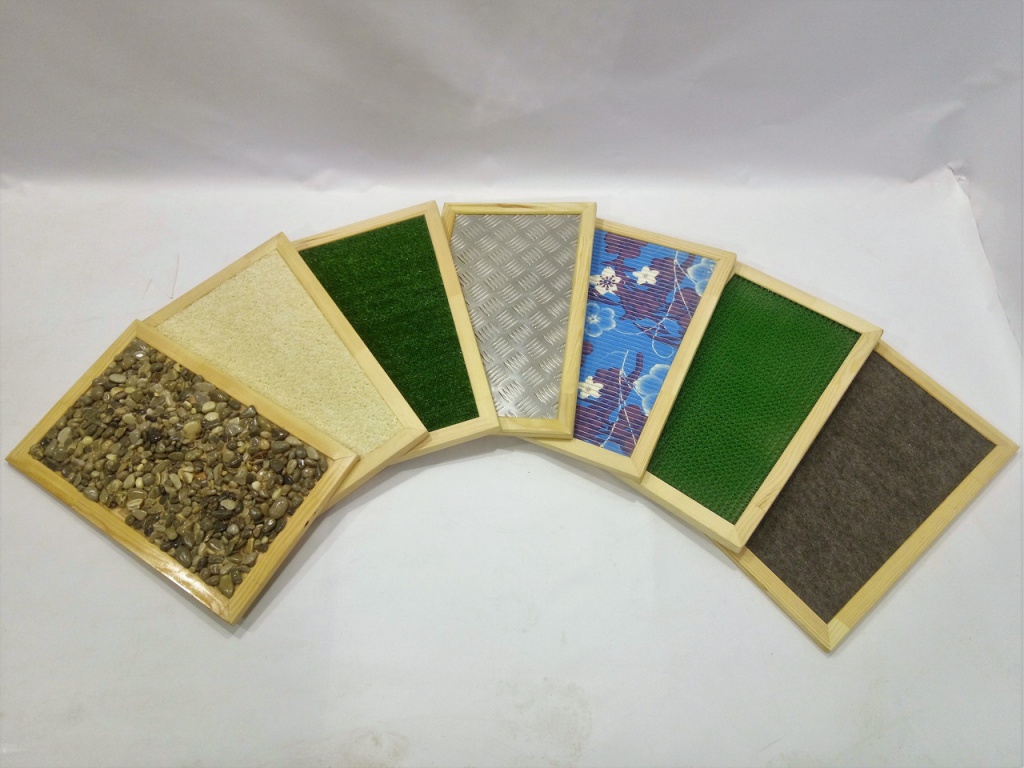 Поверхность содержит следующие покрытия: мелкие камни; ковровое покрытие; ковролин «искусственная травка»; металлическое покрытие с рифленой поверхностью; гладкий ковролин; "гимнастический коврик"; щетинистое покрытие.
