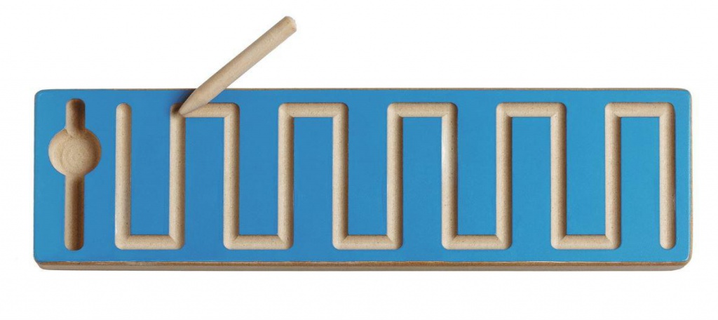 Доска с повторяющимися элементами и деревянным "карандашом" (длина 7,9 см, диаметр 1 см) способствует подготовке руки к рисованию и письму, развитию моторики кисти руки, зрительно-моторной координации, наблюдательности, пространственного мышления и зрительного восприятия.