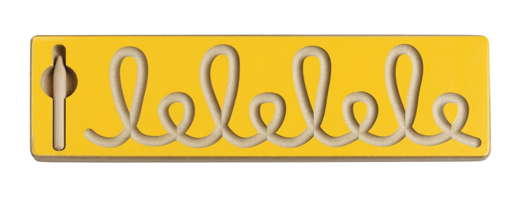 Доска с повторяющимися элементами и деревянным "карандашом" (длина 7,9 см, диаметр 1 см) способствует подготовке руки к рисованию и письму, развитию моторики кисти руки, зрительно-моторной координации, наблюдательности, пространственного мышления и зрительного восприятия.