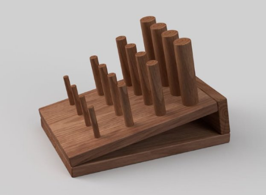 Инвентарь (тренажер) для развития силы пальцев рук с колышками наклонный направлен на выработку и развитие мелкой моторики, развитие кистей в целом, координации движения руки. Общее количество колышков круглого сечения 16 шт. сечения: 4 размера по 4 колышка. Наклон - 4 положения.