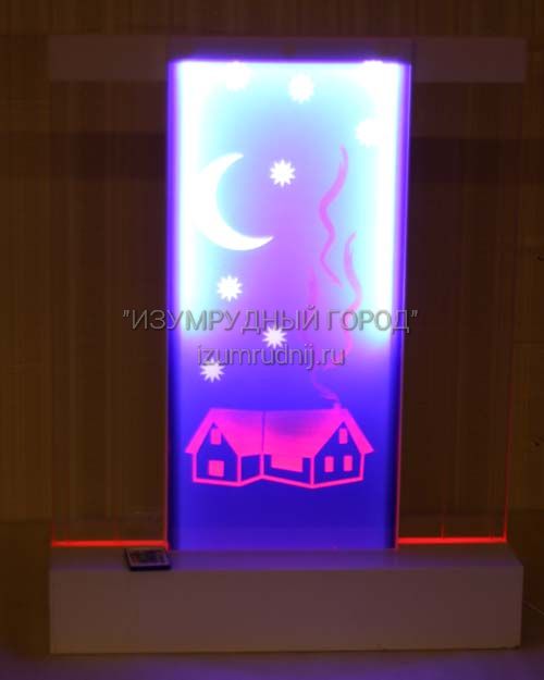 Таинственная лунная ночь! Зажги луну и звезды! Замечательная панель, совмещаемая в себе пузырьковые панели и светодиодное интерактивное освещение – таинственная лунная ночь! Ребенок может самостоятельно включать и выключать все эффекты с пульта управления или с помощью кнопочек на панели – зажечь луну или звезды, зажечь свет в окне домика. Абсолютно безопасна для детей, светодиоды скрыты в алюминиевой раме. Панели выполнены из сотового акрила. Подсветка разноцветная, управляется с пульта. 500*700*50мм.