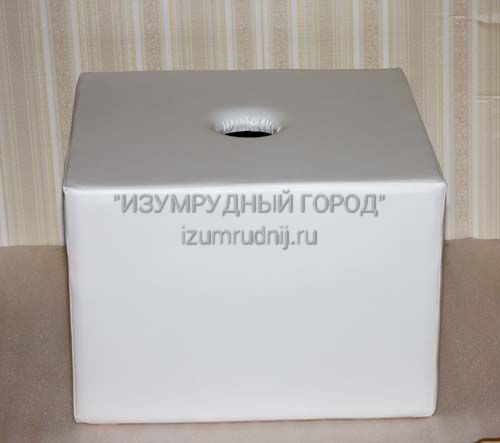 60х60х40см. Одно отверстие для колонны 20см. Каркас выполнен из ДСП 16 мм, который обклеен поролоном толщиной 20 мм и обтянут чехлом из винилискожи высокого качества.