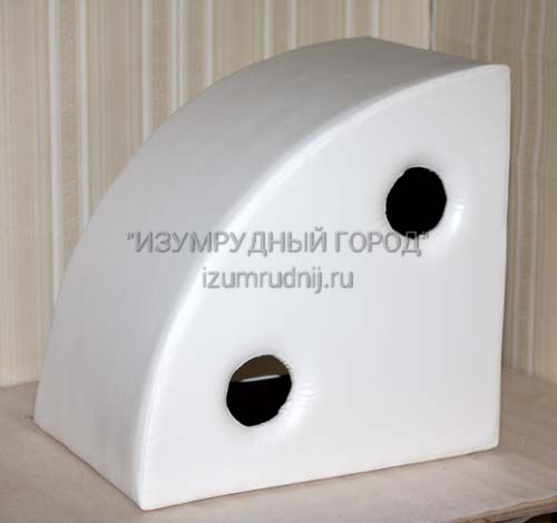 Размеры: 60х60см. Высота: 40см. Угловое. Два отверстия для колонн диаметром 20см. Каркас выполнен из ДСП 16 мм, который обклеен поролоном толщиной 20 мм и обтянут чехлом из винилискожи высокого качества.