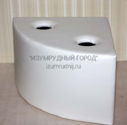 Размеры: 60х60см. Высота: 40см. Угловое. Два отверстия для колонн диаметром 10см. Каркас выполнен из ДСП 16 мм, который обклеен поролоном толщиной 20 мм и обтянут чехлом из винилискожи высокого качества.