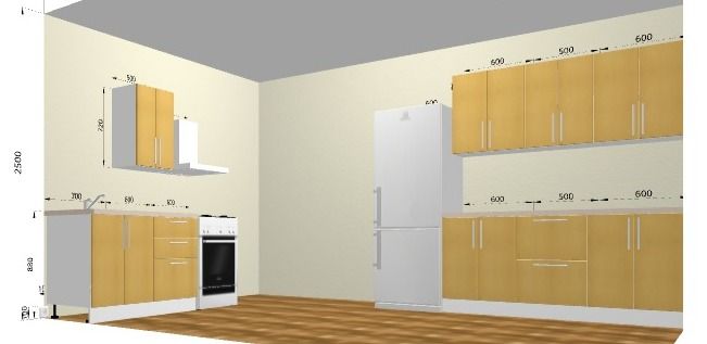 Габариты: 1300*1700 мм Фасады: МДФ Шампань Корпус: ЛДСП белый Столешница: Скиф 28 мм Глубина: столешница 600 мм, верхние шкафы 300 мм Комплектация: фурнитура EDSON, ножки, ручки, водоотбойник, сушка